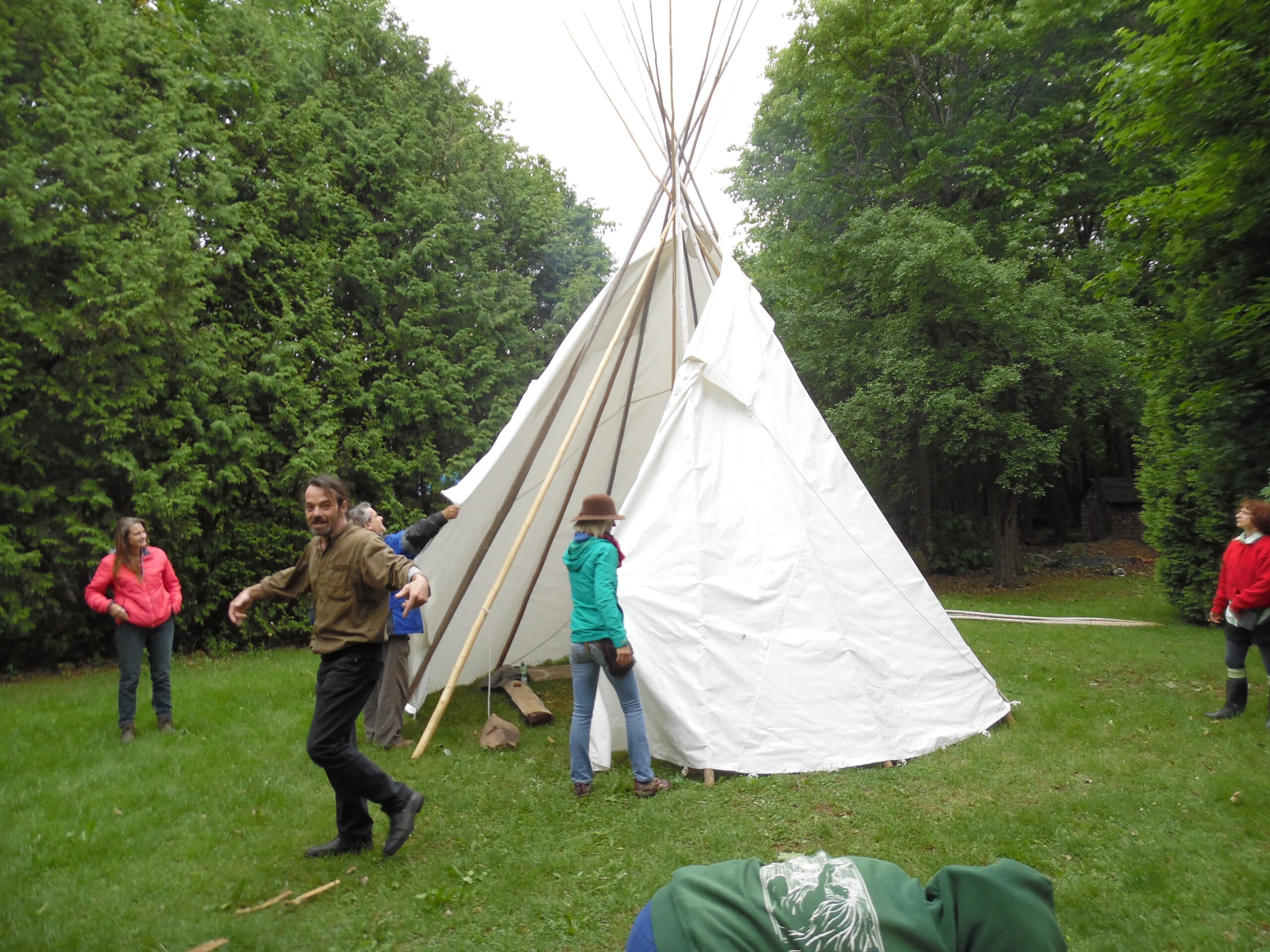 Courant juin nous avons fait un essai avec un rabaska (nous sommes 12 à bord) et également nous avons monté et démonté le tipi (qui sera à faire à chaque campement).